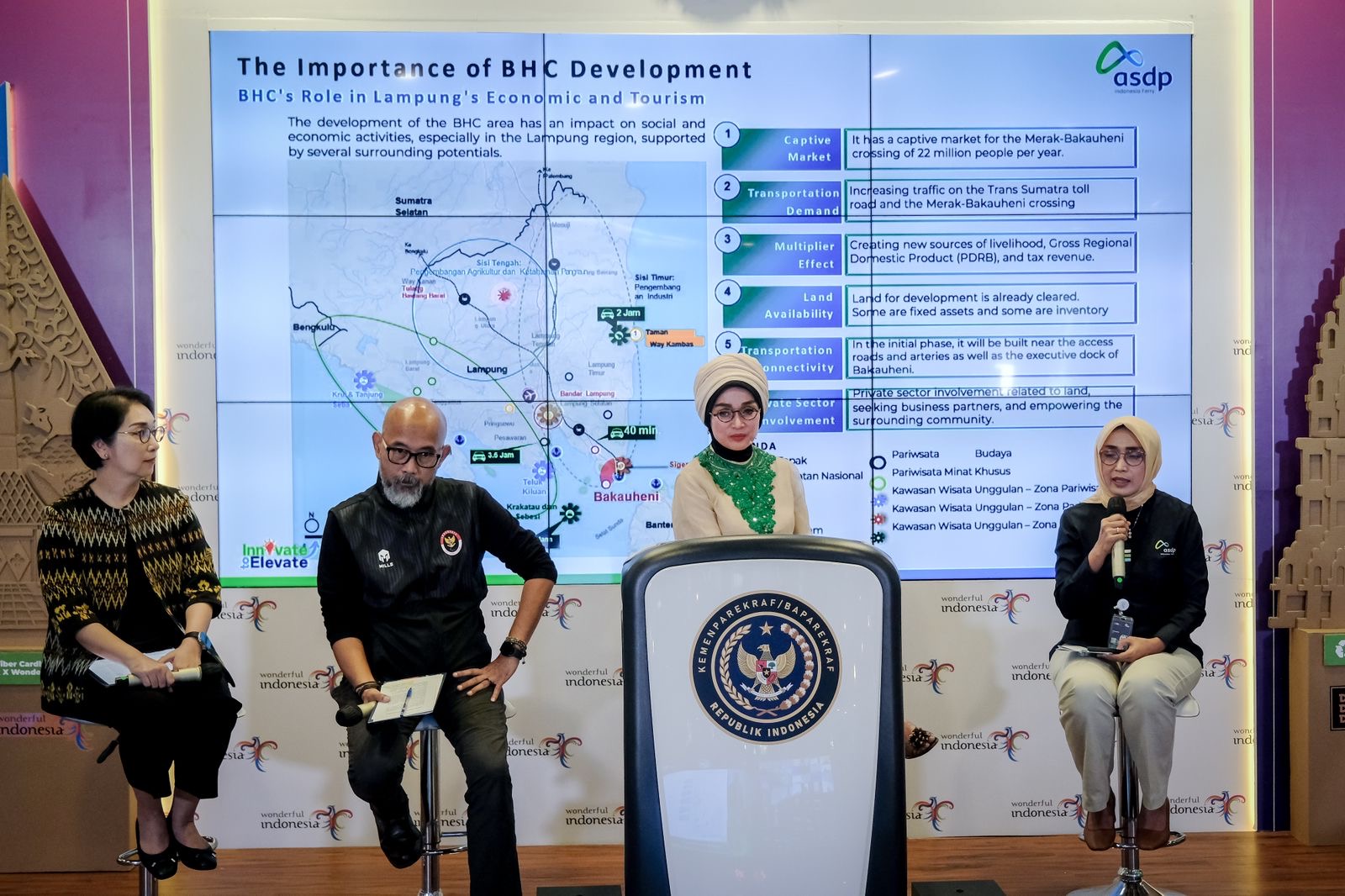 “Kami mengapresiasi ASDP yang turut menghadirkan atraksi wisata baru di Lampung Selatan. Sehingga memberikan alternatif tujuan wisata. Apalagi Bakauheni menjadi gerbang awal wisatawan yang hendak menuju ke Pulau Sumatra,” kata Adyatama Kepariwisataan dan Ekonomi Kreatif Ahli Utama Kemenparekraf/Baparekraf, Nia Niscaya, dalam "The Weekly Brief With Sandi Uno", Senin (16/4/2024).